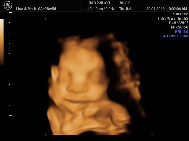 Week 28 Scan Posted on January 20, 2013 by admin Posted in Scan 1 Comment On Sunday 20th January we returned to Peek-A-Baby to see the second 4 dimensional scan using the sonography to visualise the ghostly 2D ultrasound images.